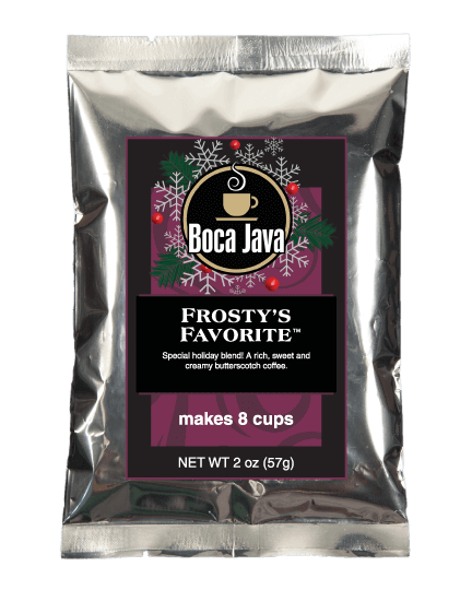 A blend of specialty coffee with a base that's full-bodied and complex, Frosty's Favorite coffee offers a buttery taste sensation that will keep you warm and cozy on a cold winter's day.